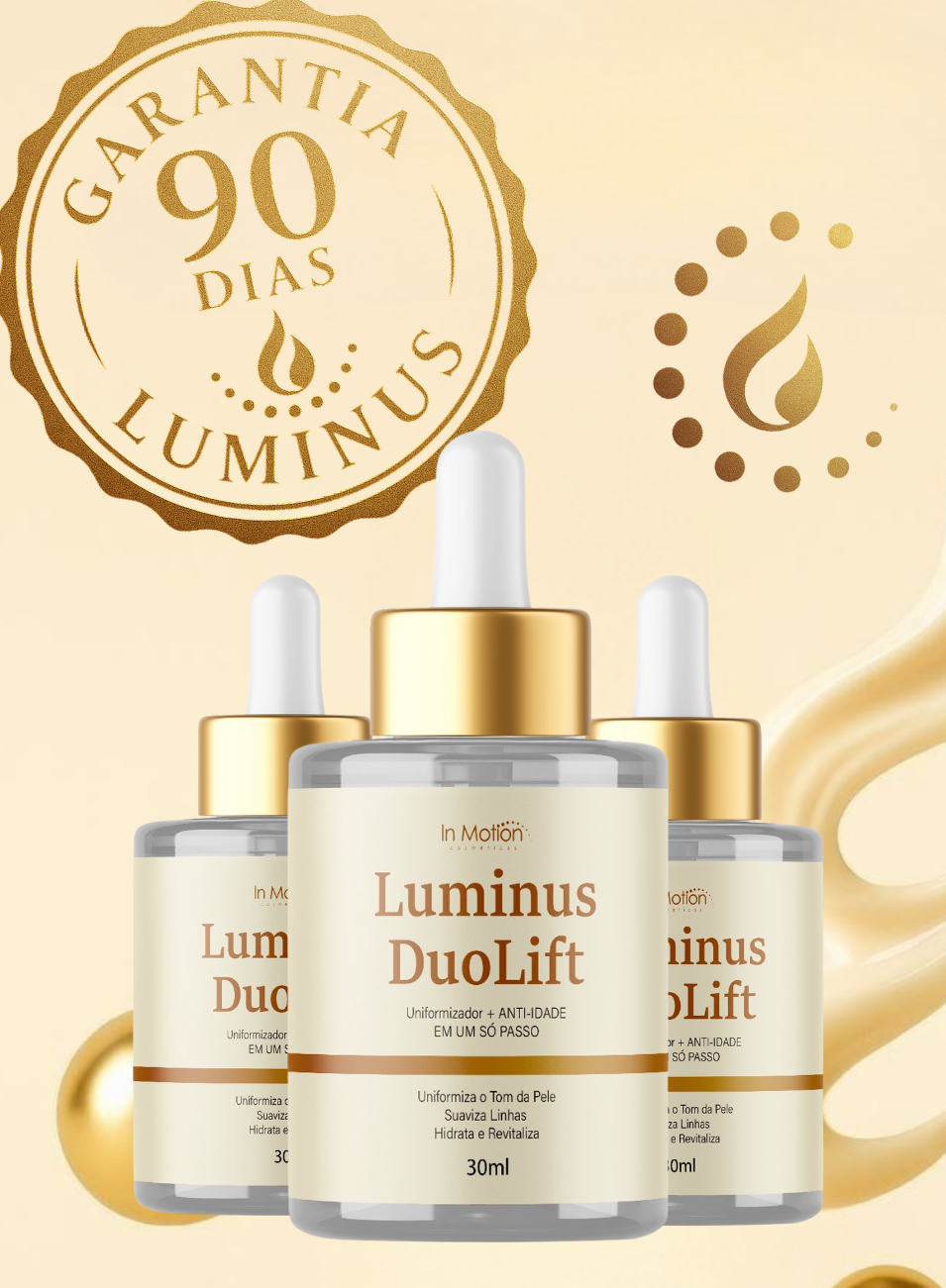 O Luminus DuoLift foi desenvolvido para mulheres reais, modernas e atarefadas, que não têm tempo, paciência ou dinheiro para gastar com dezenas de cosméticos diferentes. É uma skincare prática, inteligente e simplificada, que entrega em um único sérum, tudo o que sua pele precisa: hidratação, uniformização, clareamento, firmeza e rejuvenescimento. Luminus DuoLift foi desenvolvido para acompanhar o ritmo da sua rotina, sem abrir mão amor-próprio, da sofisticação e de resultados visíveis todos os dias.